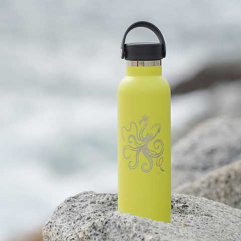 Senden Sie uns Ihr Logo, Wunschmotiv oder Schriftzug und wir lasern es präzise auf unsere hochwertigen Edelstahlflaschen.